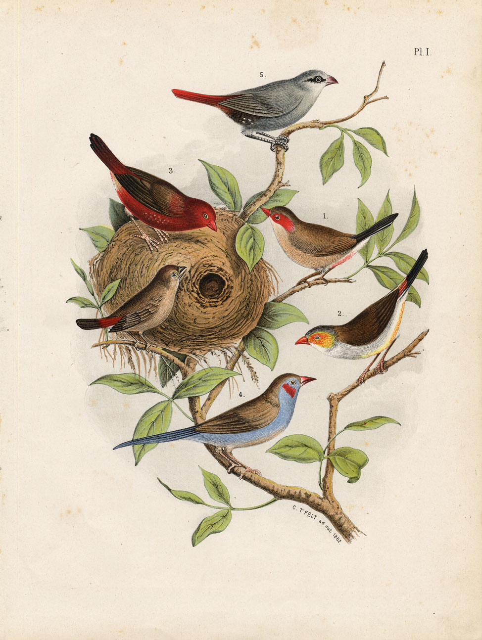Aegintha Waxbill Finch Plate 1 Nuyens Field 1882