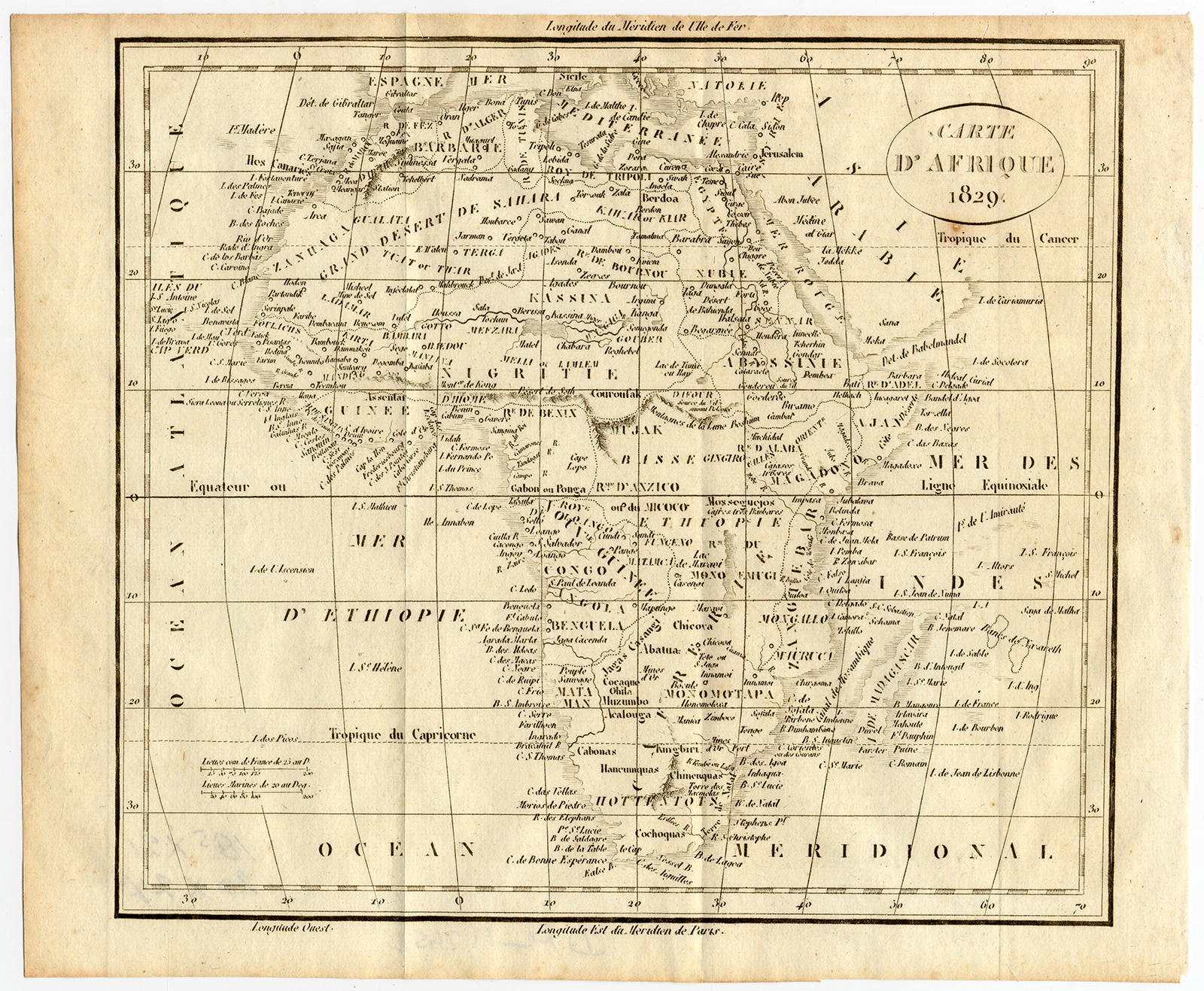 Onderwerp: Kaart: ‘Carte d’Afrique 1829’. Deze kaart toont het continent Afrika.