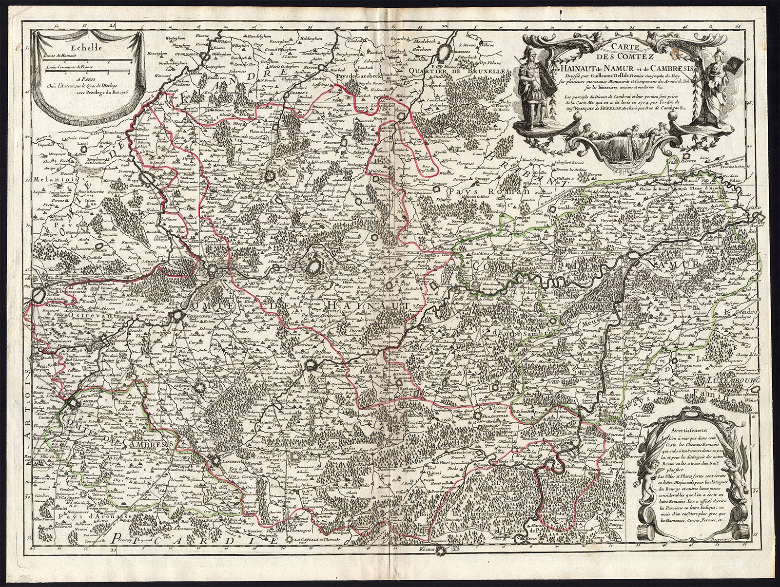 Antieke Kaart België Henegouwen Namen Cambrai Frankrijk Brussel De L?Isle 1706