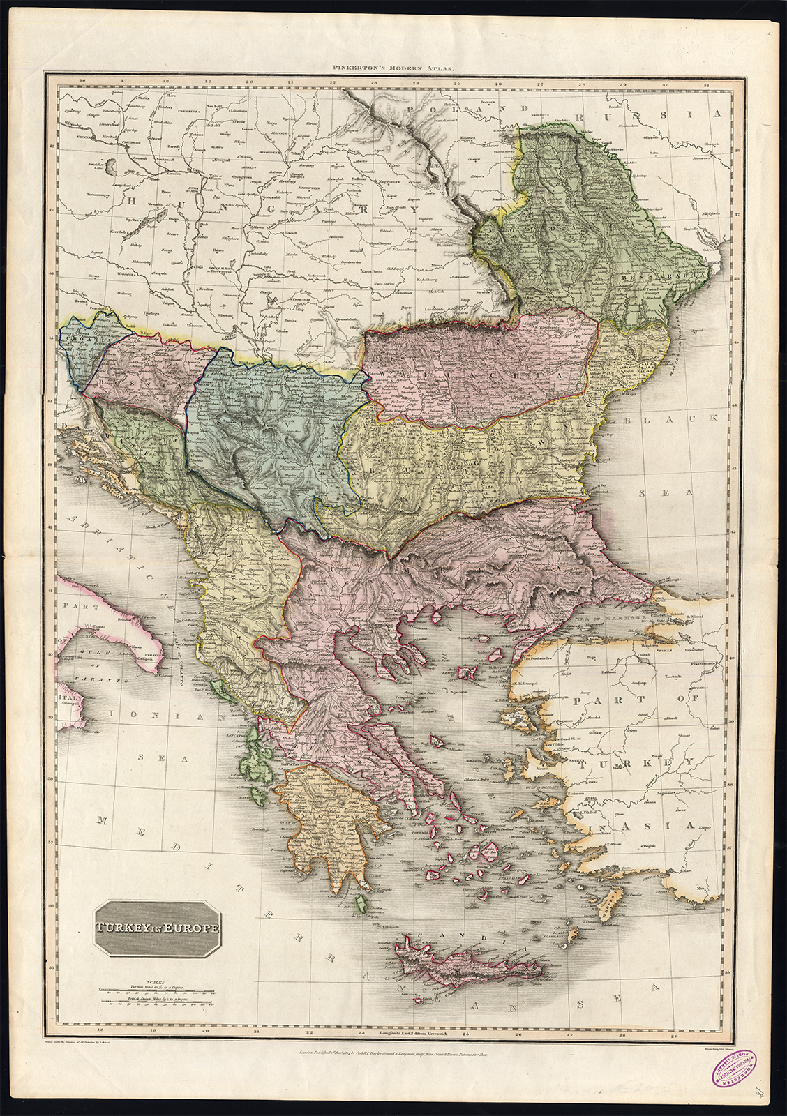 Antieke Kaart Turkije Europa Ottomaanse Rijk Griekenland Kreta Pinkerton Hebert 1814