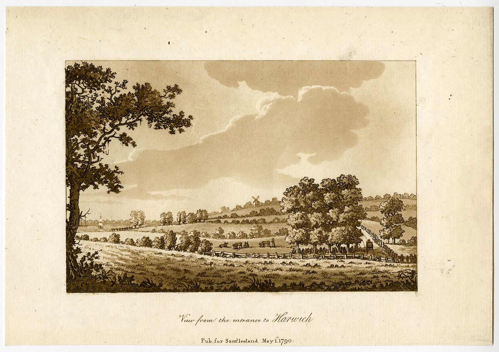 Onderwerp: Bord: ‘Aanzicht vanaf de ingang naar Harwich’.