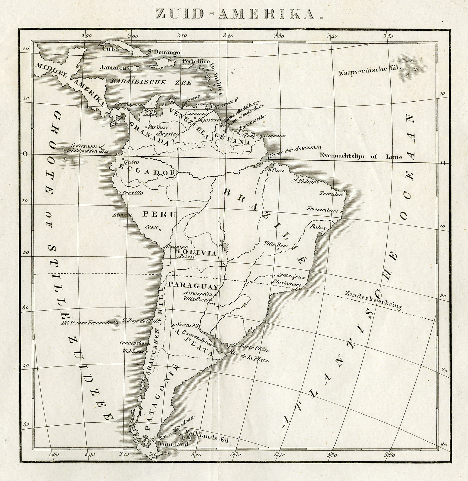 Onderwerp: Kaart : ‘Zuid-Amerika’. Kaart van Zuid-Amerika.