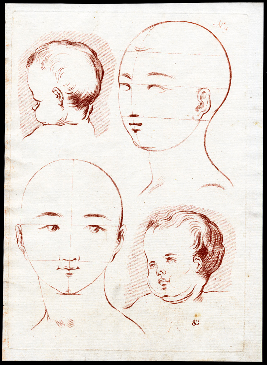 Kunstenaars en graveurs: Uitgever: Robert Sayer (Brits: 1725 – 1794). Graveur: Gabriel Smith (Brits 1724-1783). Smith ging naar Parijs, waar hij de methode van graveren leerde in navolging van krijttekeningen, en bij zijn terugkeer naar Engeland maakte hij een serie platen in deze stijl naar ontwerpen van Watteau, Boucher, Le Brun, Bouchardon en anderen, die werden gepubliceerd door J. Bowles met de titel ‘The School of Art, of het meest complete tekenboek dat nog bestaat.’ Kunstenaar: Charles le Brun. (Franse kunstenaar).