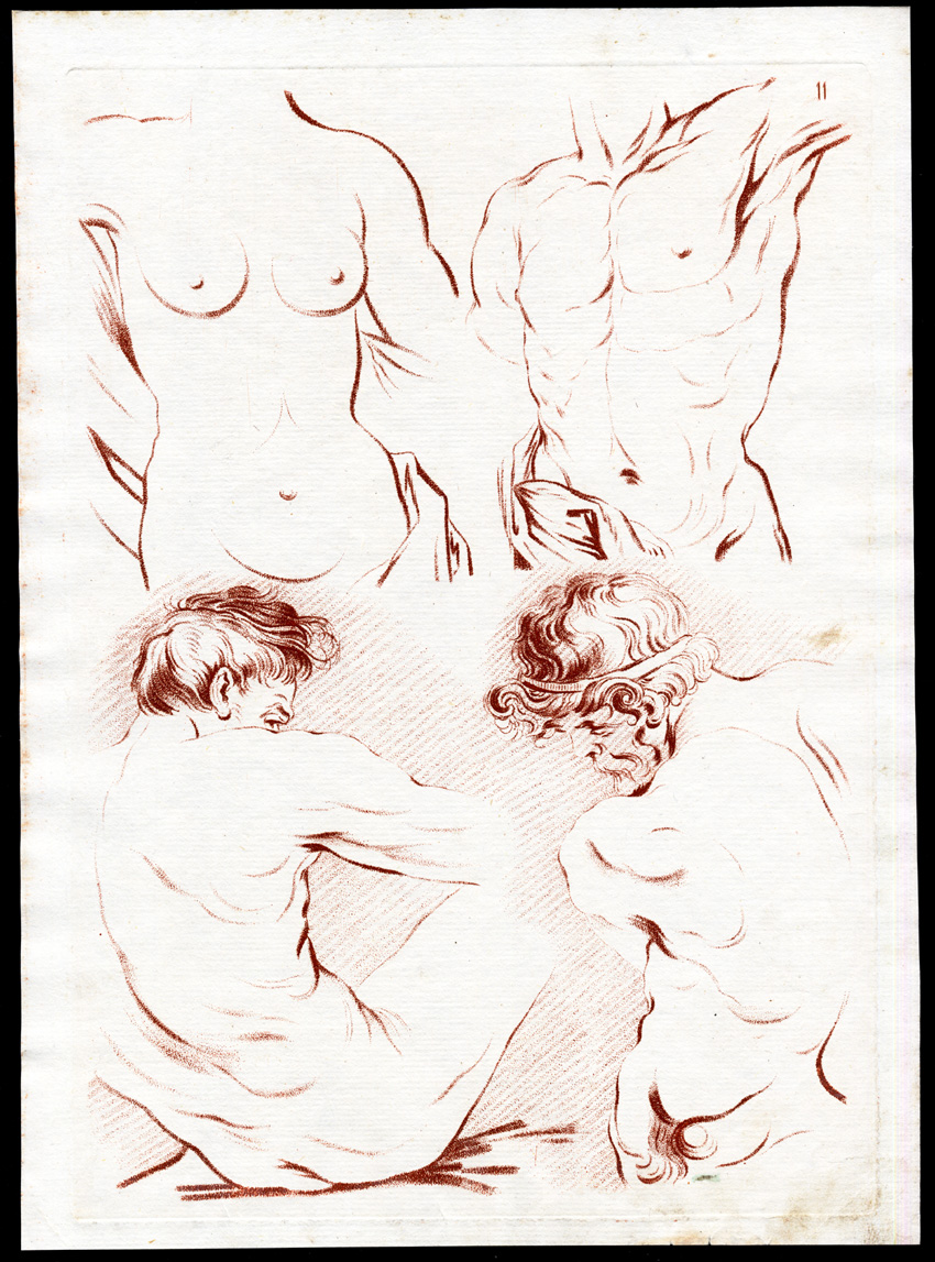 Antieke Master Print-ART STUDIE-MODEL-TEKENING-TORSOS-BODIES-Smith-1765