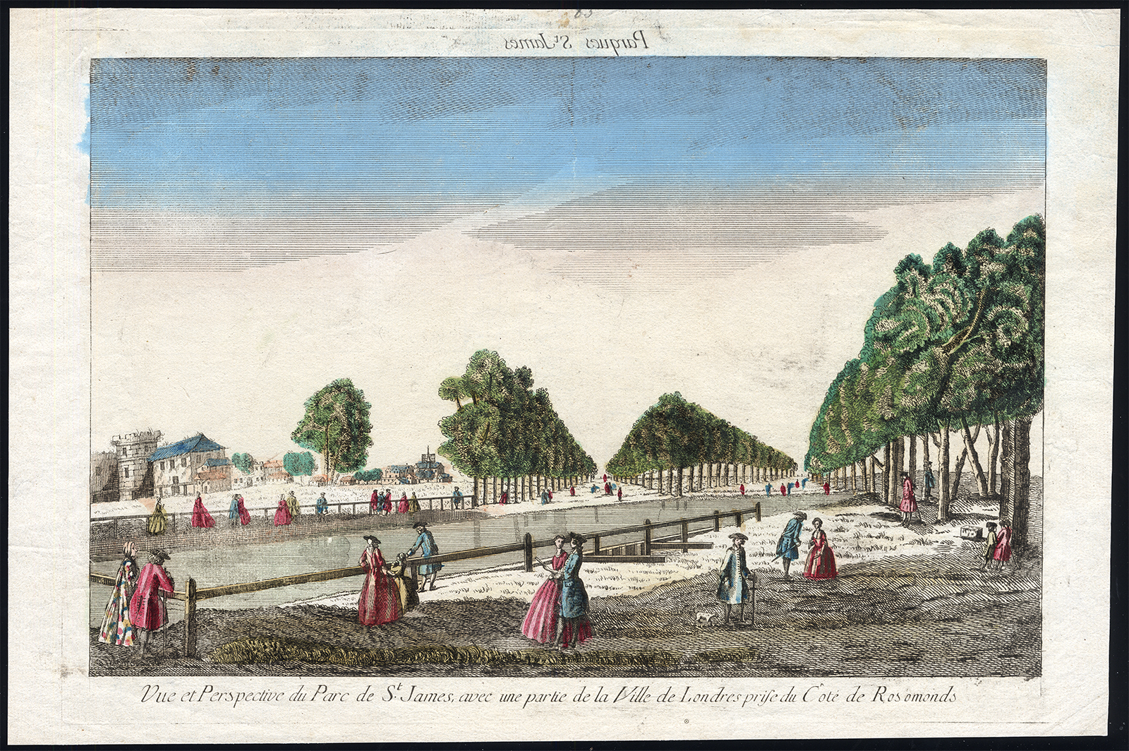 Antieke optische print-SAINT JAMES PARK-LONDEN-ENGELAND-BRITTANNIË-1770
