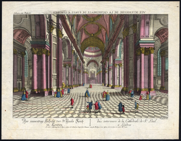 Antieke optische print-ST. PAUL’S KATHEDRAAL-LONDEN-INTERIEUR-ENGELAND-Leizelt-1770