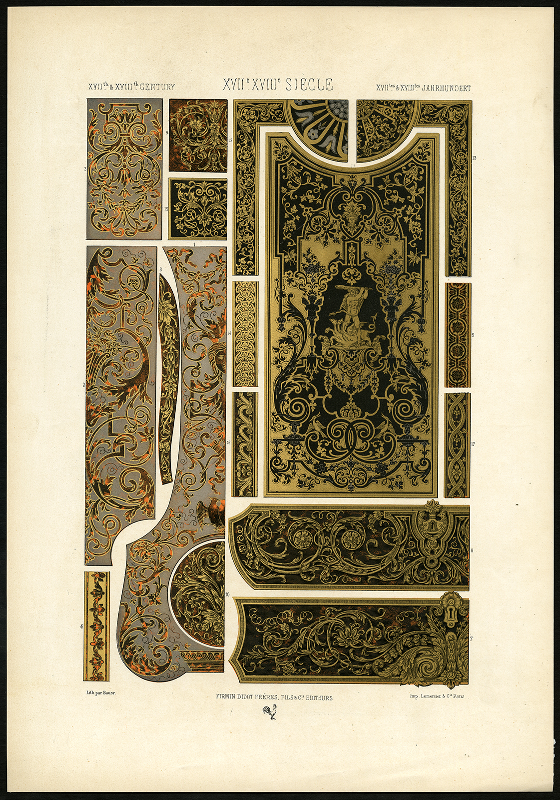 Antieke prent-17e eeuw-18e-DESIGN-ORNAMENT-Racinet-ca. 1870