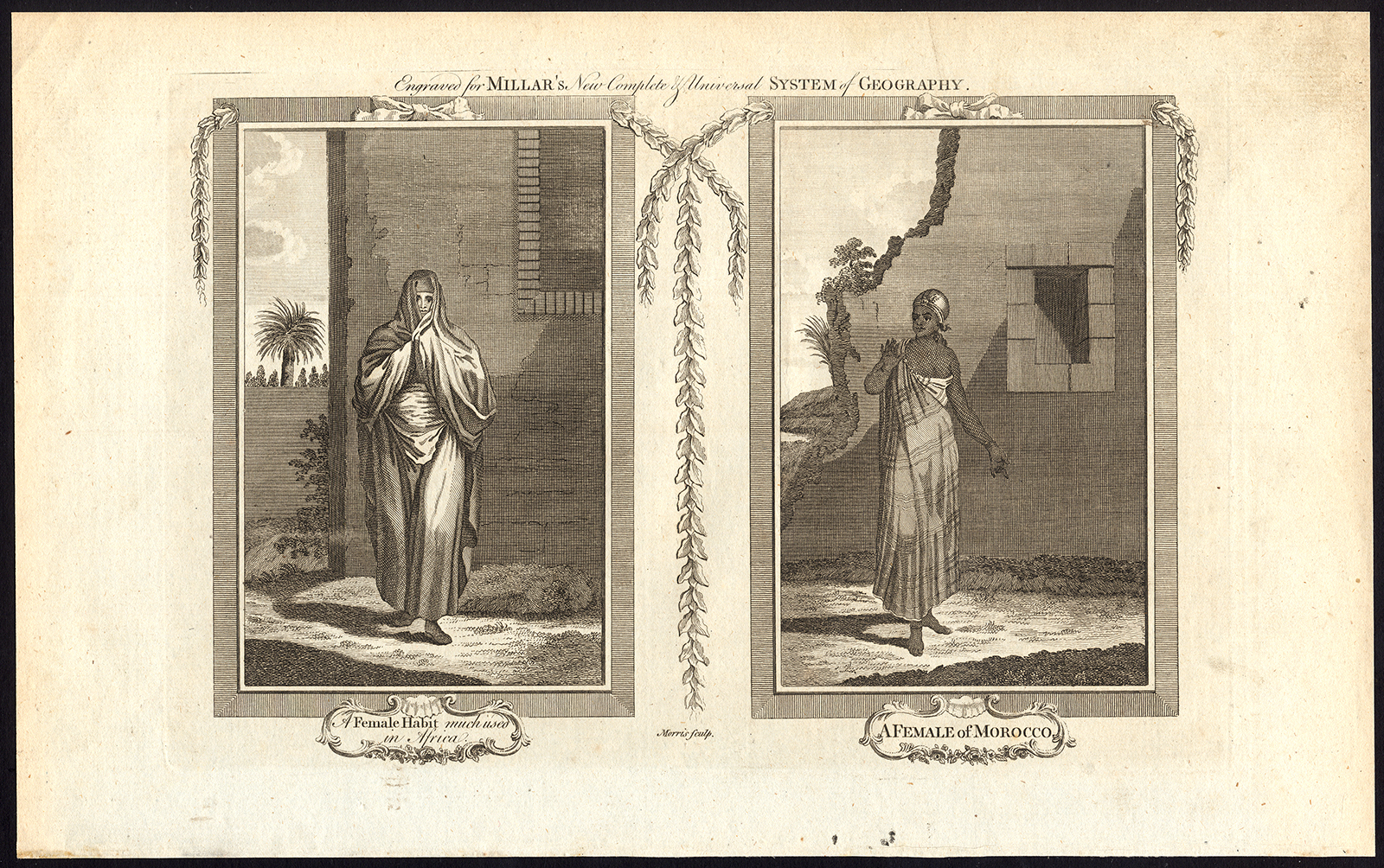 Antieke prent-AFRIKA-KOSTUUM-VROUW-MAROKKO-GEWOONTE-Morris-1782