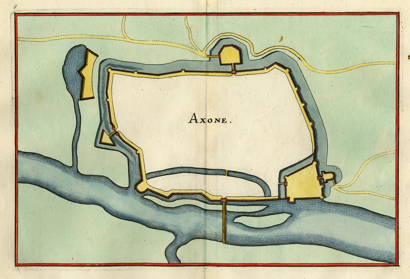 Antieke prent-AXONE-FRANKRIJK-VESTING-VESTING-Merian-1646