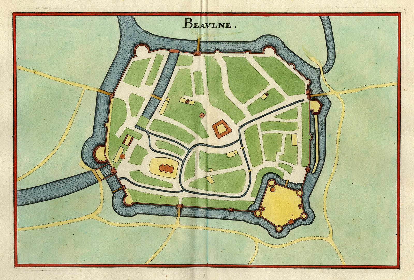 Antieke prent-BEAULNE-FRANKRIJK-VESTING-VESTING-Merian-1646