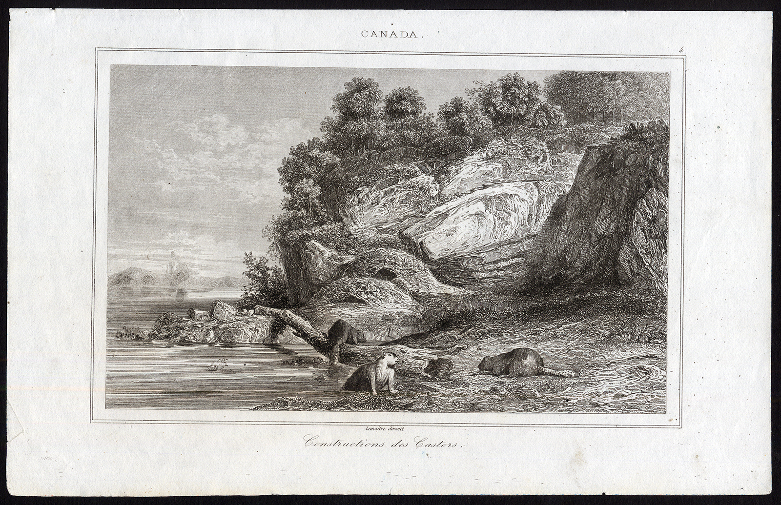 Antieke prent-BEAVER-CASTOR-CANADA-Lemaitre-1849