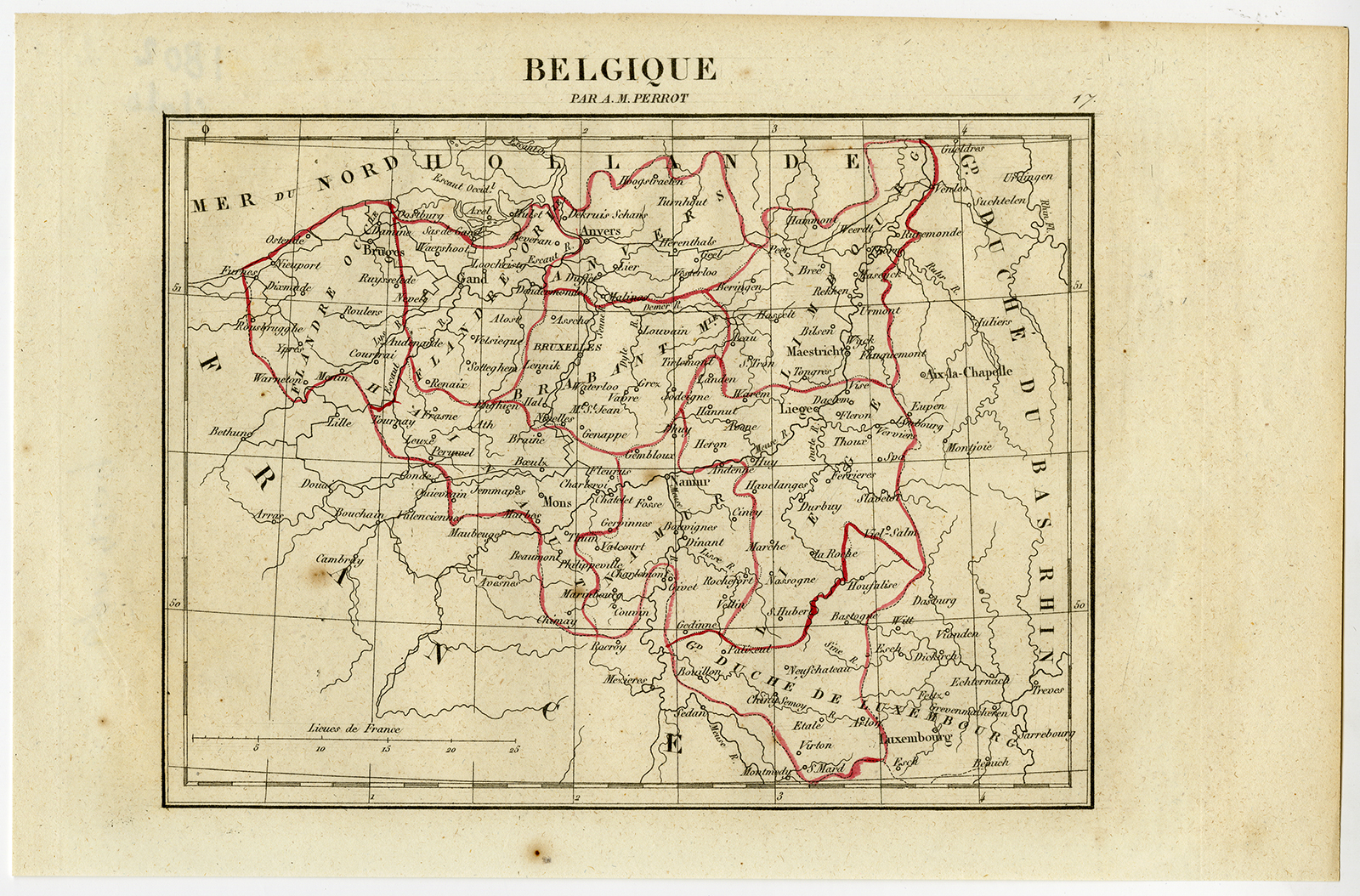 Onderwerp: Antieke prent, getiteld: ”Belgique par AM Perrot.” – Deze originele antieke kaart toont België.
