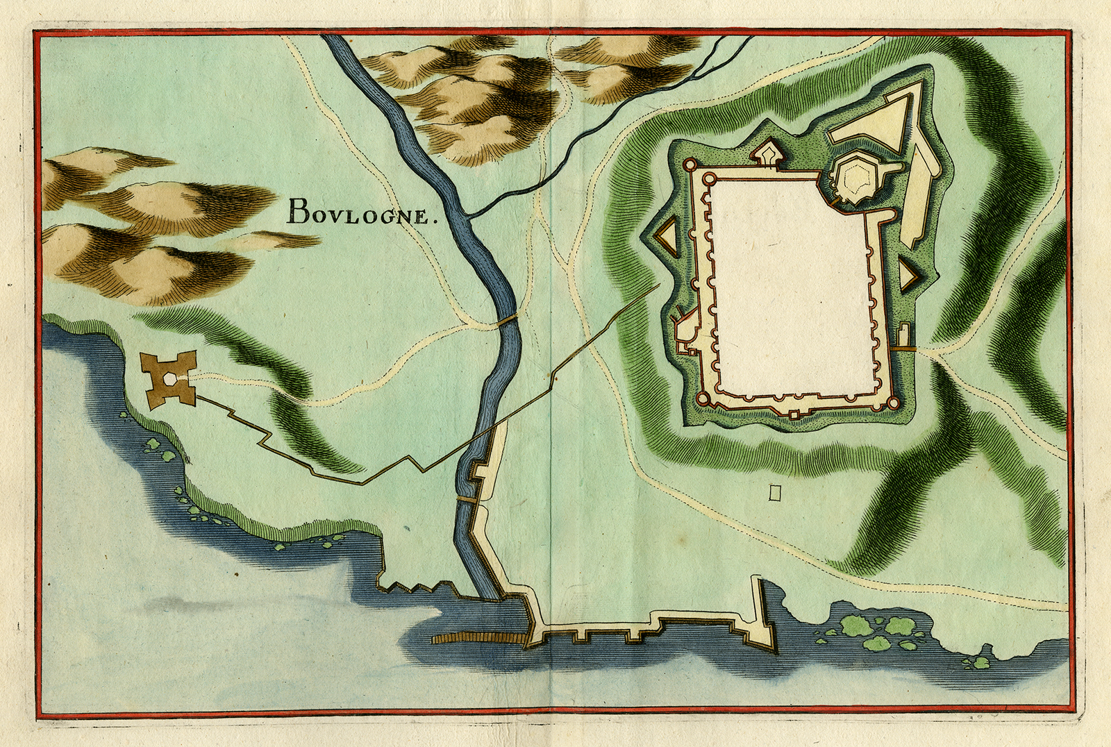 Onderwerp: Plaat: ‘Boulogne’. Dit bord toont de vestingstad Boulogne in Frankrijk.