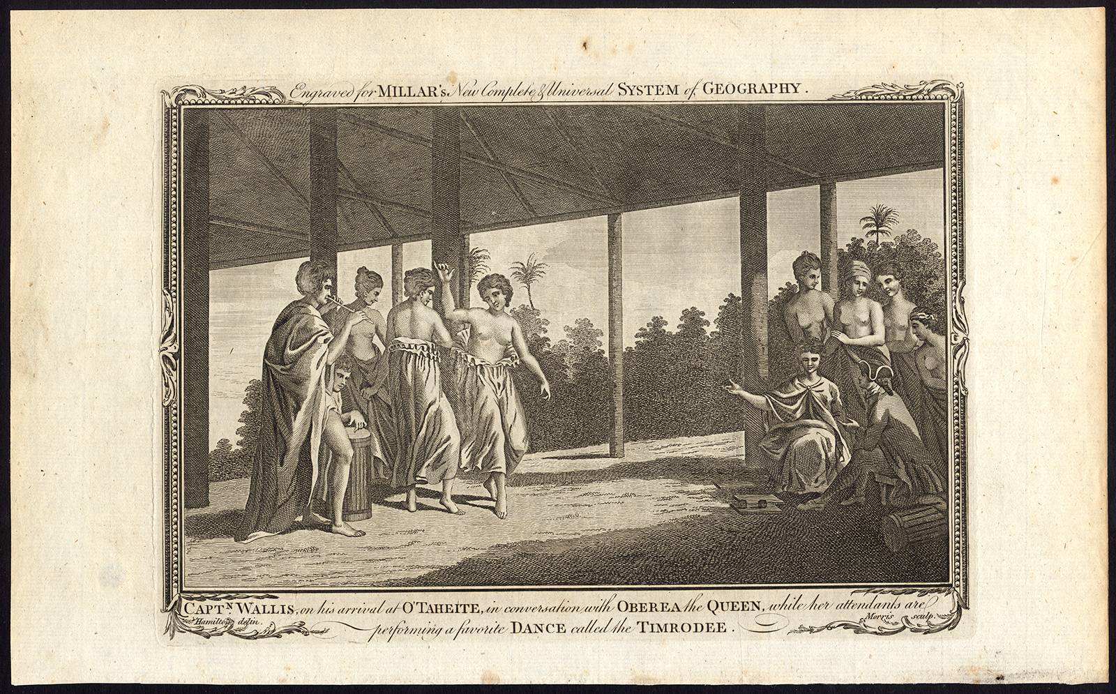Antieke prent-CAPTAIN WALLIS-KONINGIN OBEREA-TAHITI-TIMRODEE-Morris-Hamilton-1782