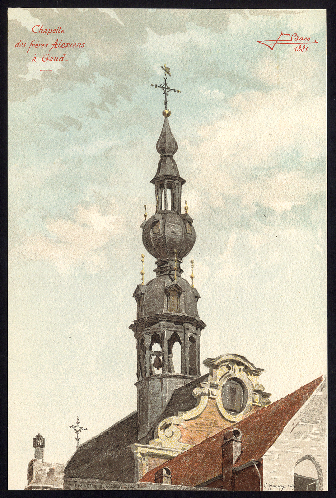 Antieke prent-CHAPELLE DES FRERES ALEXIENS-KERK-GENT-GAND-BELGIË-Baes-1890
