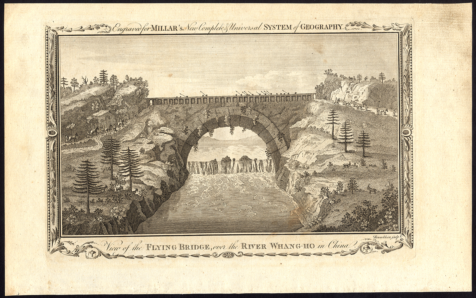 Antieke prent-CHINA-GELE RIVIER-VLIEGENDE BRIDGE-HUANG HE-Rennoldson-1782