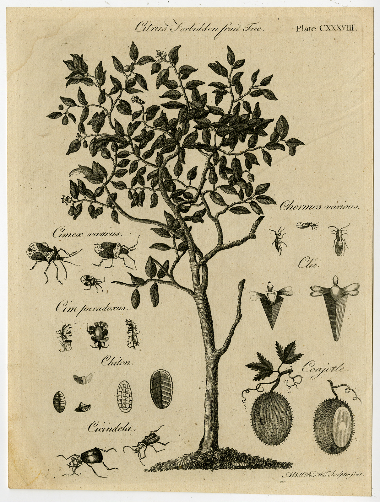 Antieke prent-CITRUS-FRUIT-VERBODEN-INSECT-TREE-Bell-1797