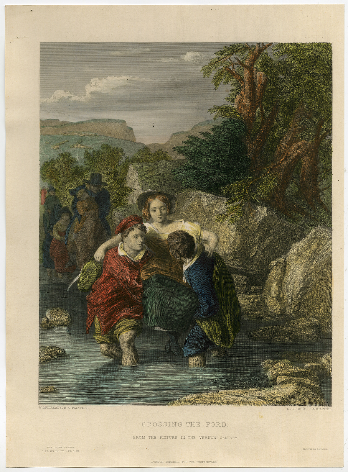 Antieke prent-CROSSING THE FORD-Mulready-Stocks-c. 1870