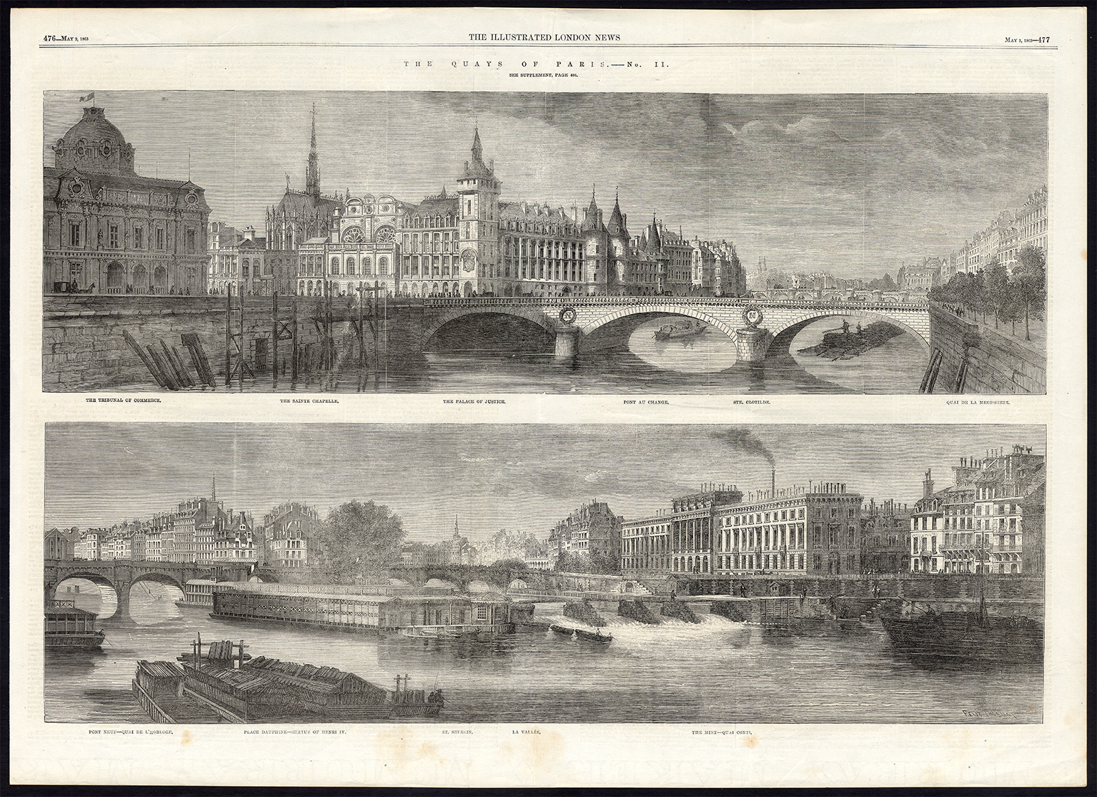 Antieke prent-DE KADES VAN PARIJS-PONT NEUF-SAINTE CHAPELLE-FRANCE-Thorigny-1863