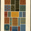 Beschrijving: “L’Ornement polychroom” door MA Racinet, Parijs: Firmin-Didot, 1869-1873. Een van de grote werken in ‘Grammar-of-Ornament’-stijl uit de tweede helft van de 19e eeuw met 100 prachtige platen met ornamenten en ontwerpen die teruggaan tot de oudheid, zoals sieraden, tegels, glas-in-lood, verluchte manuscripten, textiel en keramiek omvatten deze decoratieve ontwerpen een breed scala aan culturele esthetiek, waaronder klassieke Egyptische, Griekse, Romeinse en Etruskische motieven, Aziatische en Midden-Oosterse patronen, evenals Europese ontwerpen van de middeleeuwen tot de 19e eeuw.