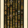 Beschrijving: “L’Ornement polychroom” door MA Racinet, Parijs: Firmin-Didot, 1869-1873. Een van de grote werken in ‘Grammar-of-Ornament’-stijl uit de tweede helft van de 19e eeuw met 100 prachtige platen met ornamenten en ontwerpen die teruggaan tot de oudheid, zoals sieraden, tegels, glas-in-lood, verluchte manuscripten, textiel en keramiek omvatten deze decoratieve ontwerpen een breed scala aan culturele esthetiek, waaronder klassieke Egyptische, Griekse, Romeinse en Etruskische motieven, Aziatische en Midden-Oosterse patronen, evenals Europese ontwerpen van de middeleeuwen tot de 19e eeuw.