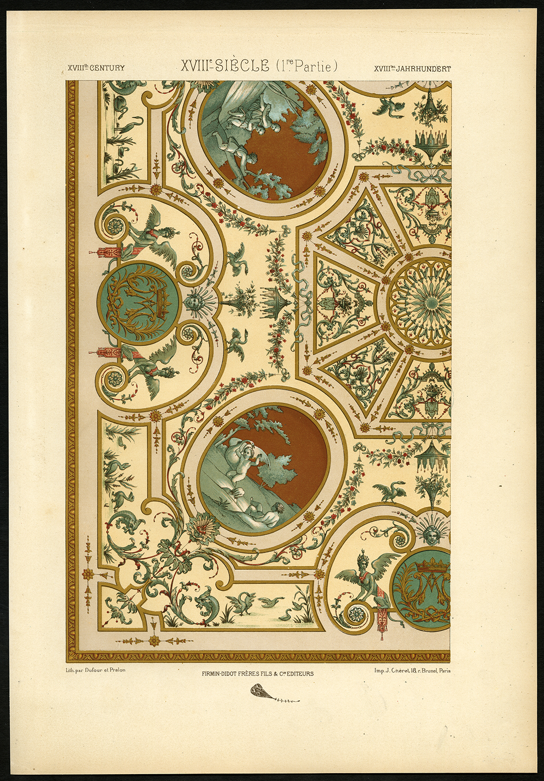 Antieke prent-DESIGN-PLAFOND-18E EEUW-Racinet-ca. 1870
