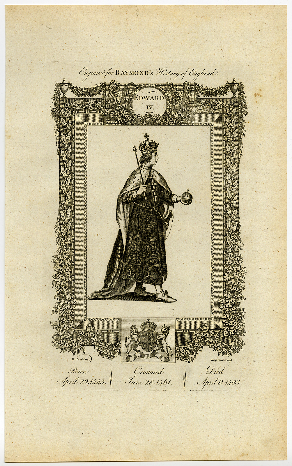 Antieke prent-ENGELAND-KONING EDWARD IV-PORTRET-Wale-Grignion-1784