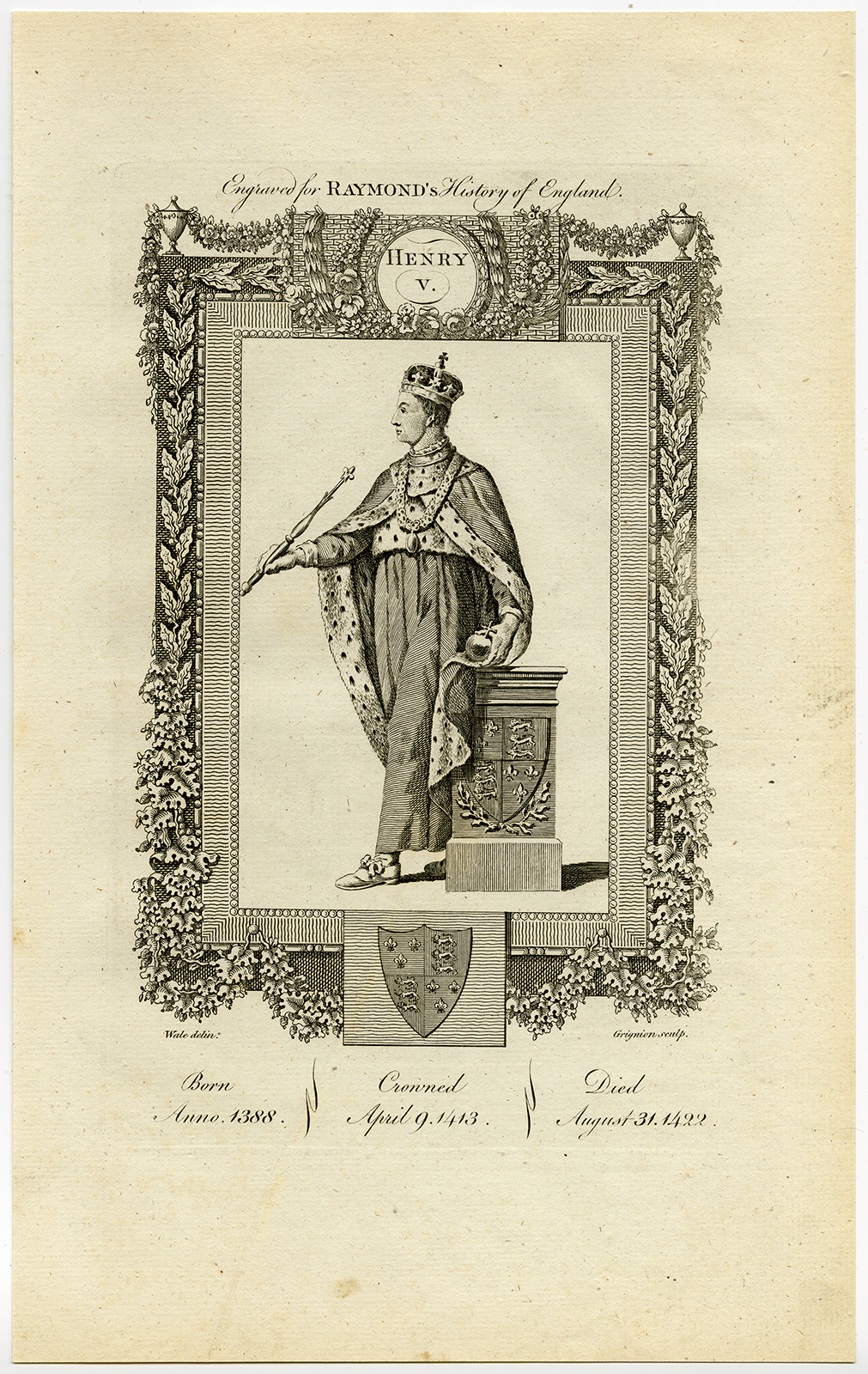 Antieke prent-ENGELAND-KONING HENRY V-PORTRET-Wale-Grignion-1784