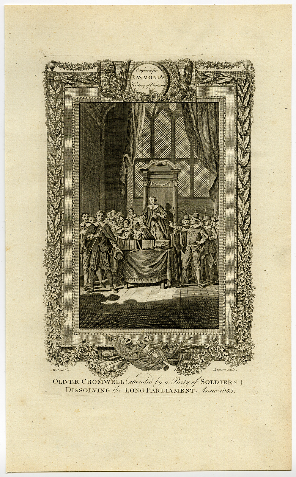 Antieke prent-ENGELAND-OLIVER CROMWELL-LONG PARLEMENT-Wale-Grignion-1784