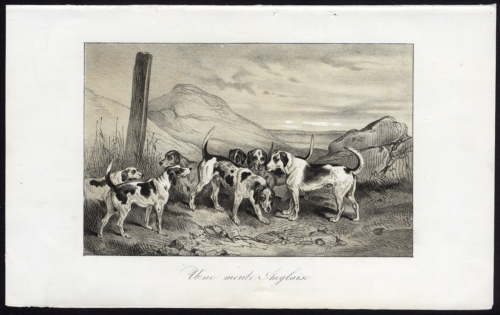 Onderwerp: Plaat: ‘Une meute Anglaise.’ Op dit bord zijn Engelse jachthonden afgebeeld.