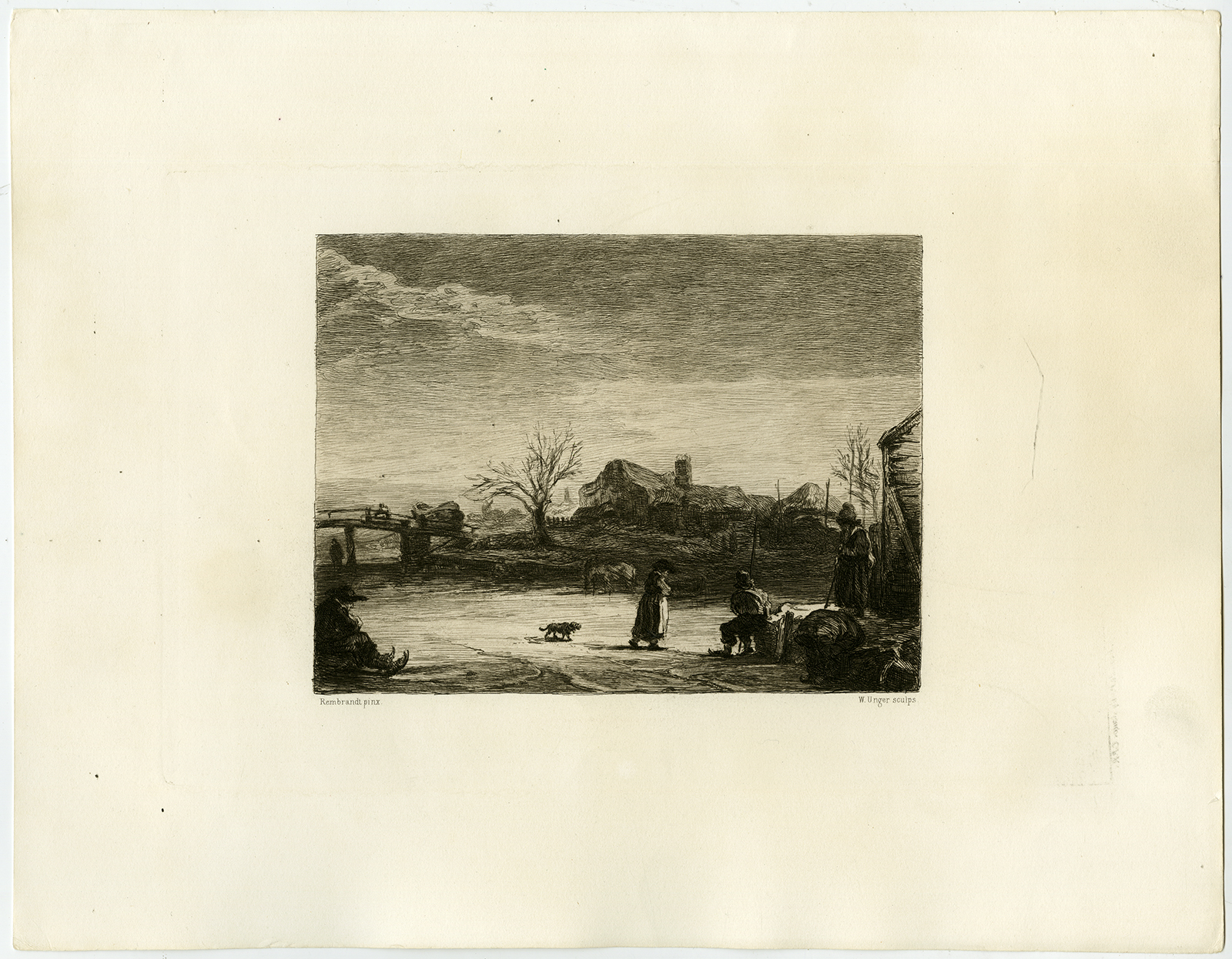 Antieke prent-ETS-WINTER-LANDSCHAP-IJSSCHAATSEN-II-Rembrandt-Unger-c. 1900