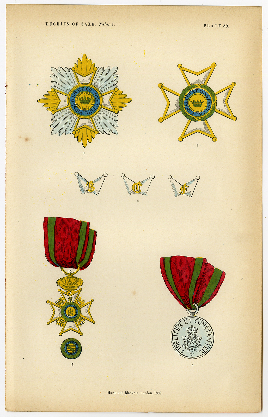 Antieke prent-FAMILIE ORDE VAN SAXE ERNEST-GOTHA-DUITSLAND-PLAAT 80-Burke-1858