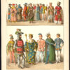 Beschrijving: Deze antieke print is afkomstig uit ‘Die Trachten der Volker, vom Beginn der Geschichte bis zum 19. Jahrhundert’ van Albert Kretschmer. Gepubliceerd 1882 door JG Bach in Leipzig, Duitsland. De tweede editie met 104 chromolithografische platen met afbeeldingen van kostuums van de mensen van de wereld, van de oude geschiedenis tot de 19e eeuw.