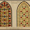 Onderwerp: Bord Tafel 53: ‘Borduren aus dem Chor der Stiftskirche und der Brunnenkapelle des Cisterzienserstifts Heilgenkreuz, 14. Jahrhundert.’ (Gebrandschilderde raamornamenten uit de Stiftskirche en Brunnenkapelle van de cisterciënzerabdij in Heiligenkreuz bij Wenen in Oostenrijk, 14e eeuw).