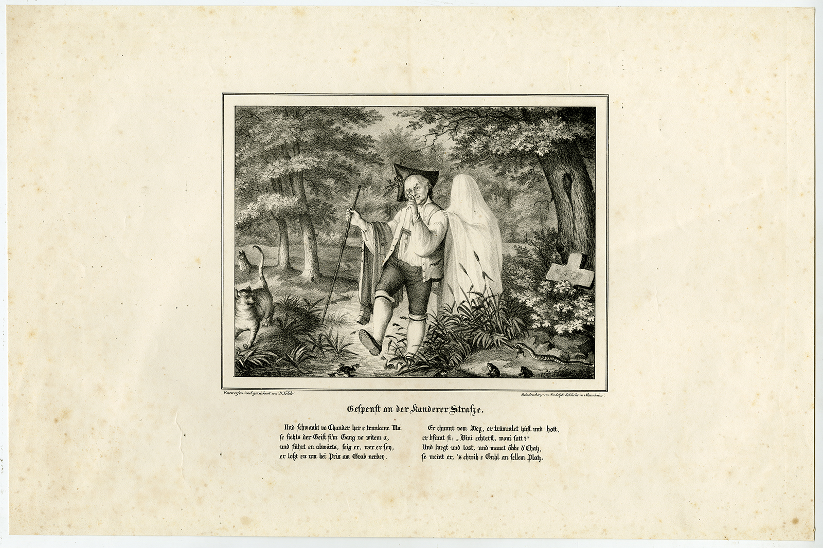 Antieke prent-GHOST-DRUNK-MAN-CAT-KANDERERSTRASSE-Volck-Schlicht-c. 1820