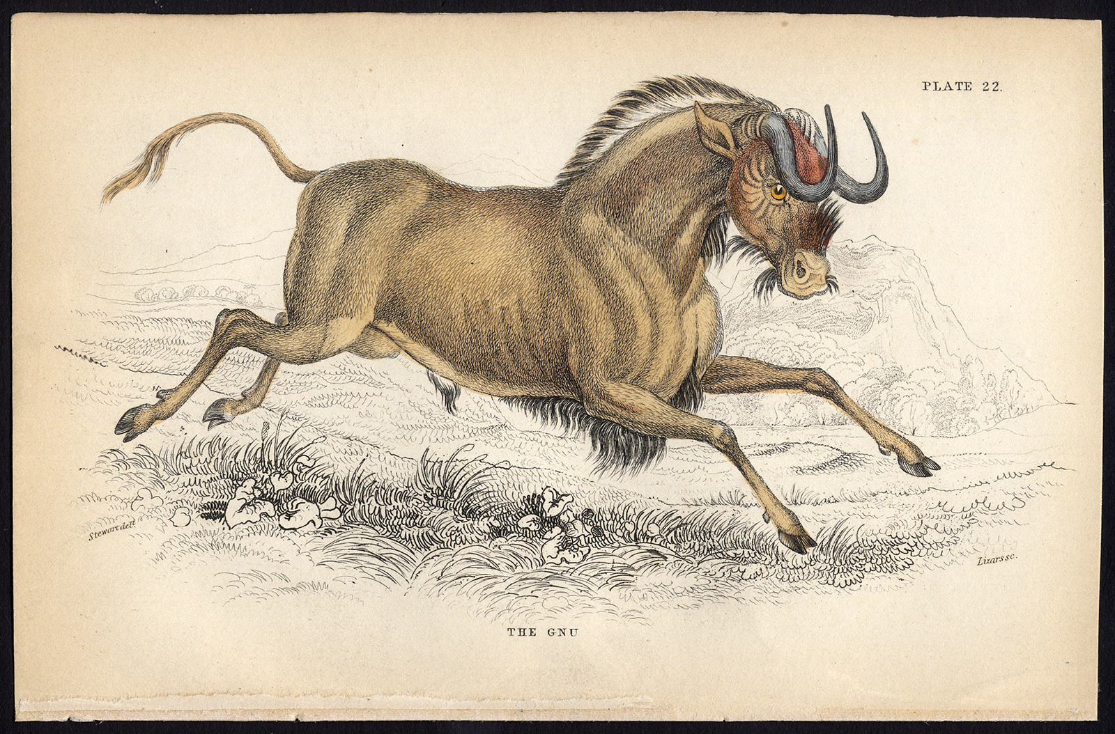 Antieke prent-GNU-WILDEBEEST-ANTELOPE-Jardine-Lizars-1836