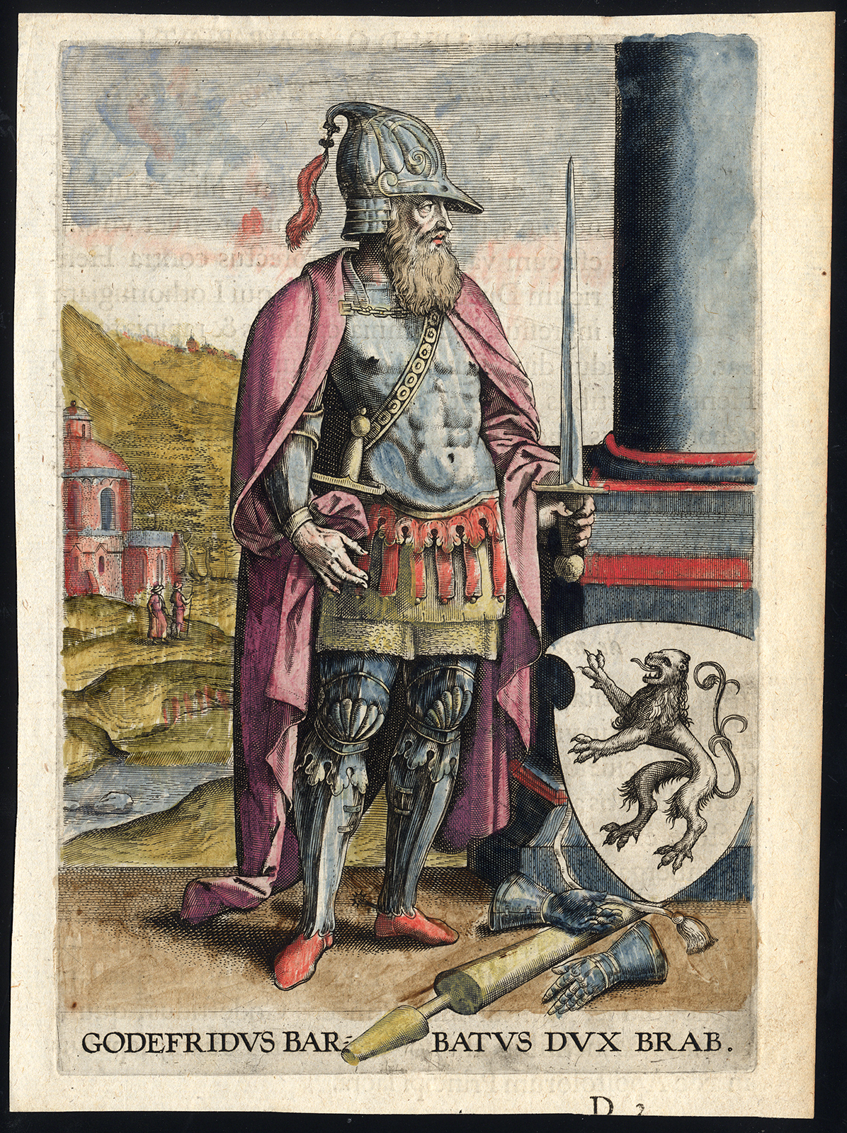 Antieke prent-GODFREY I THE BEARDED-LEEUWEN-DUKE-BRABANT-ARMOUR-Barlandus-1603