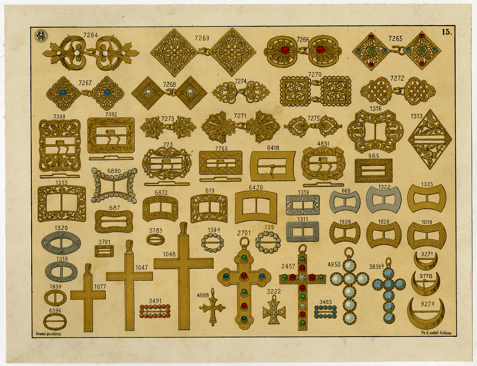 Antieke prent-GOUD-ZILVEREN-edelstenen-SIERADEN-PLAAT 15-Anoniem-c. 1890