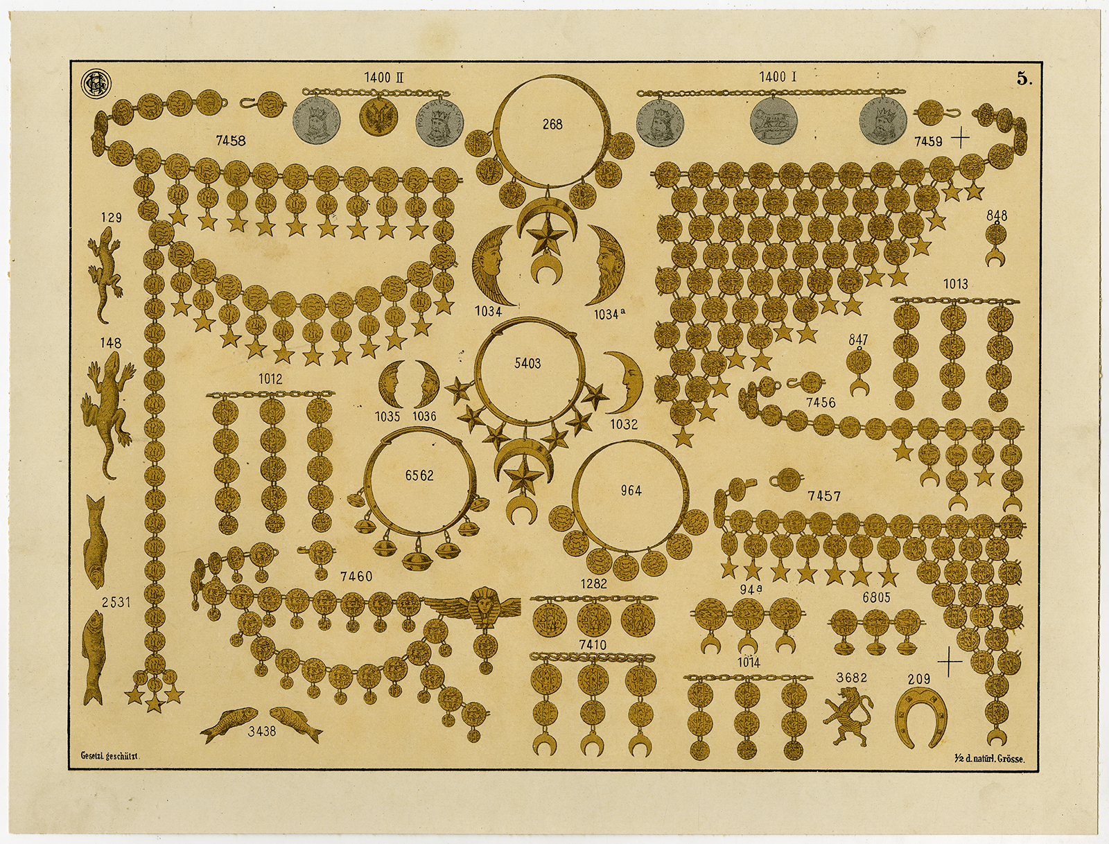 Antieke prent-GOUD-ZILVEREN-MEDAAL-SIERADEN-PLAAT 5-Anoniem-c. 1890