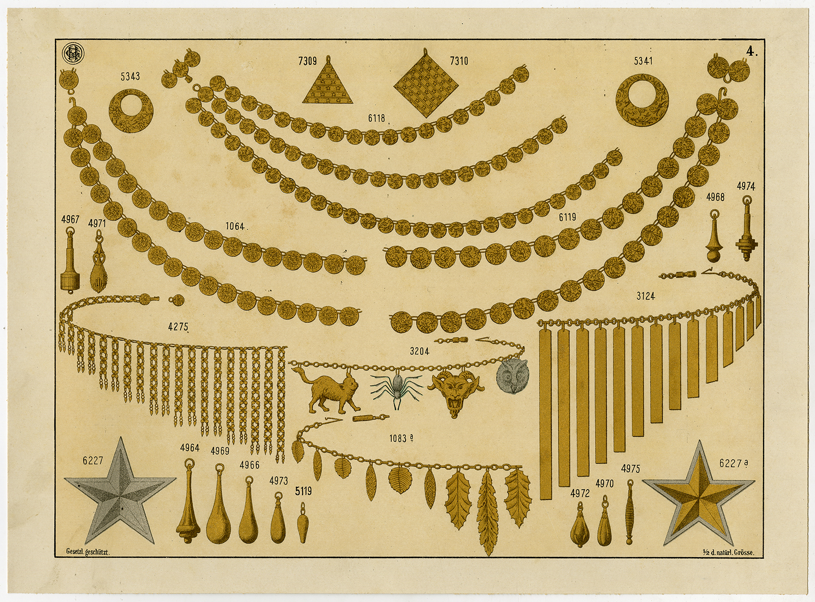 Antieke prent-GOUD-ZILVEREN-SIERADEN-PLAAT 4-Anoniem-c. 1890