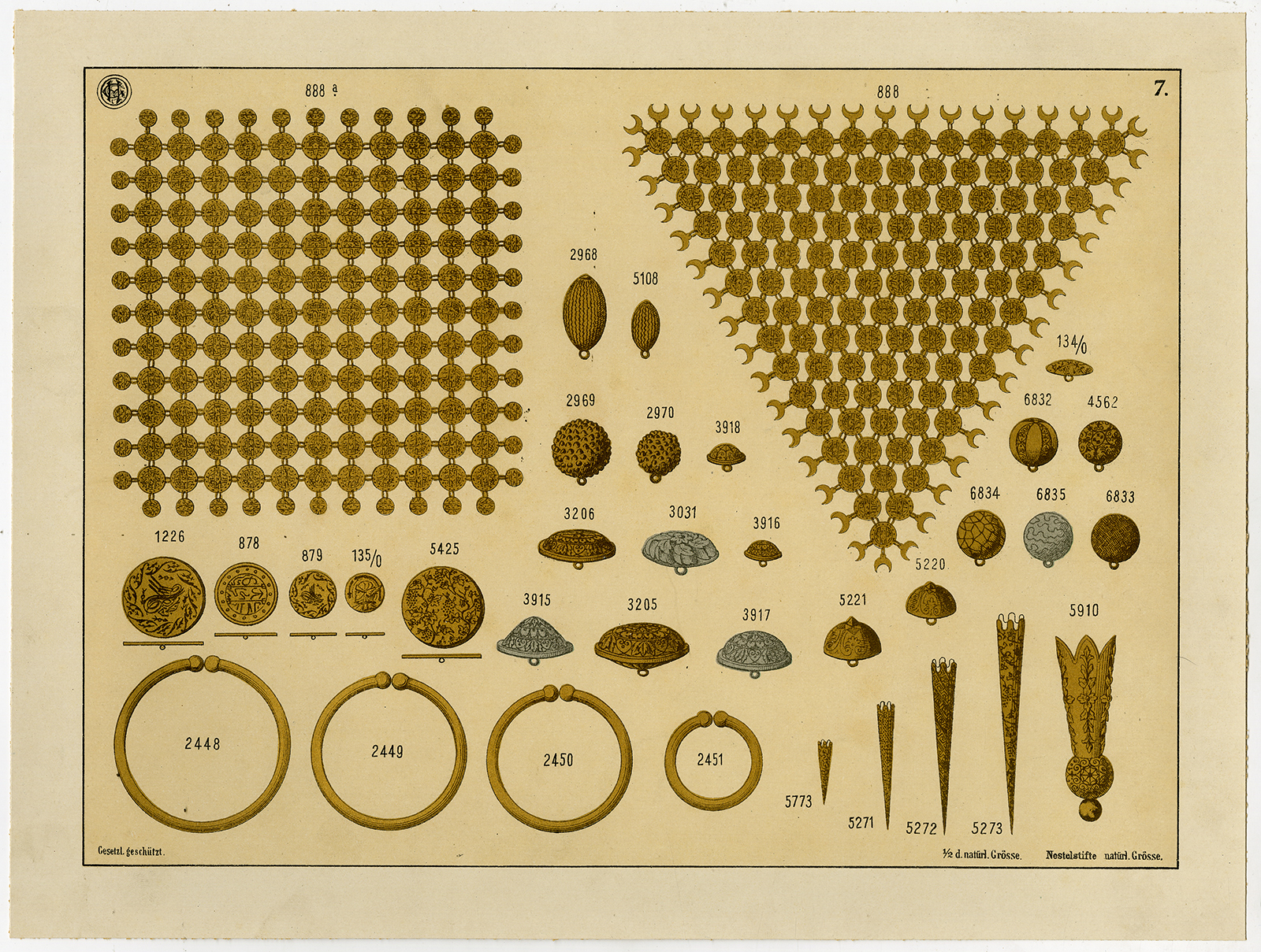 Antieke prent-GOUD-ZILVEREN-SIERADEN-PLAAT 7-Anoniem-c. 1890