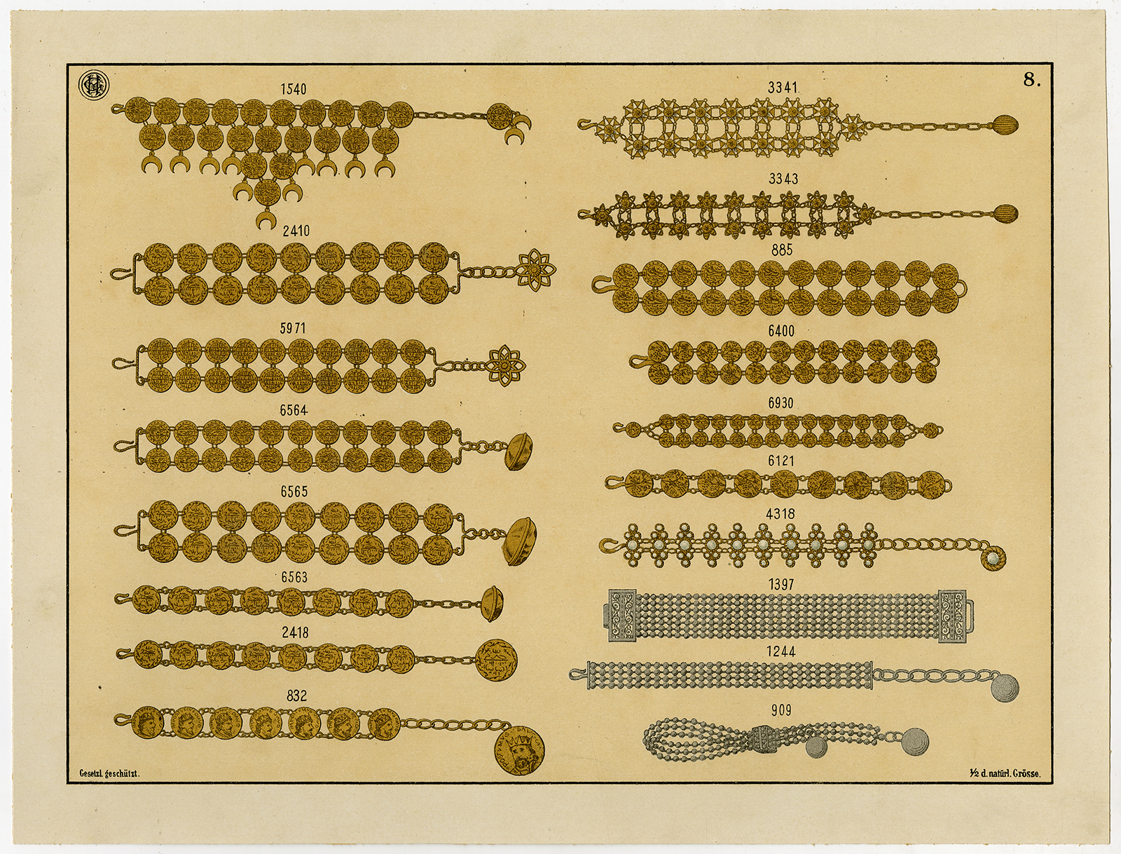 Antieke prent-GOUD-ZILVEREN-SIERADEN-PLAAT 8-Anoniem-c. 1890