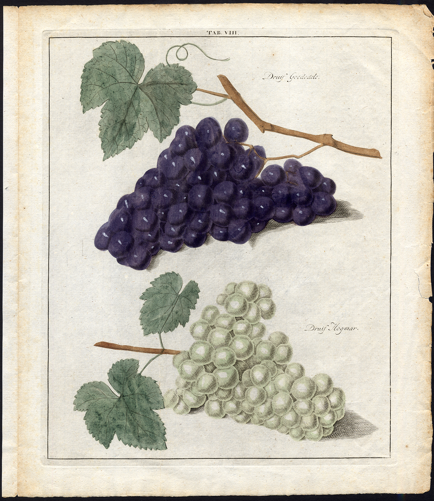 Onderwerp: Tab. vIII: ‘Druif Goededele – Druif Hogmar.’ (Blauwe en witte druif.)