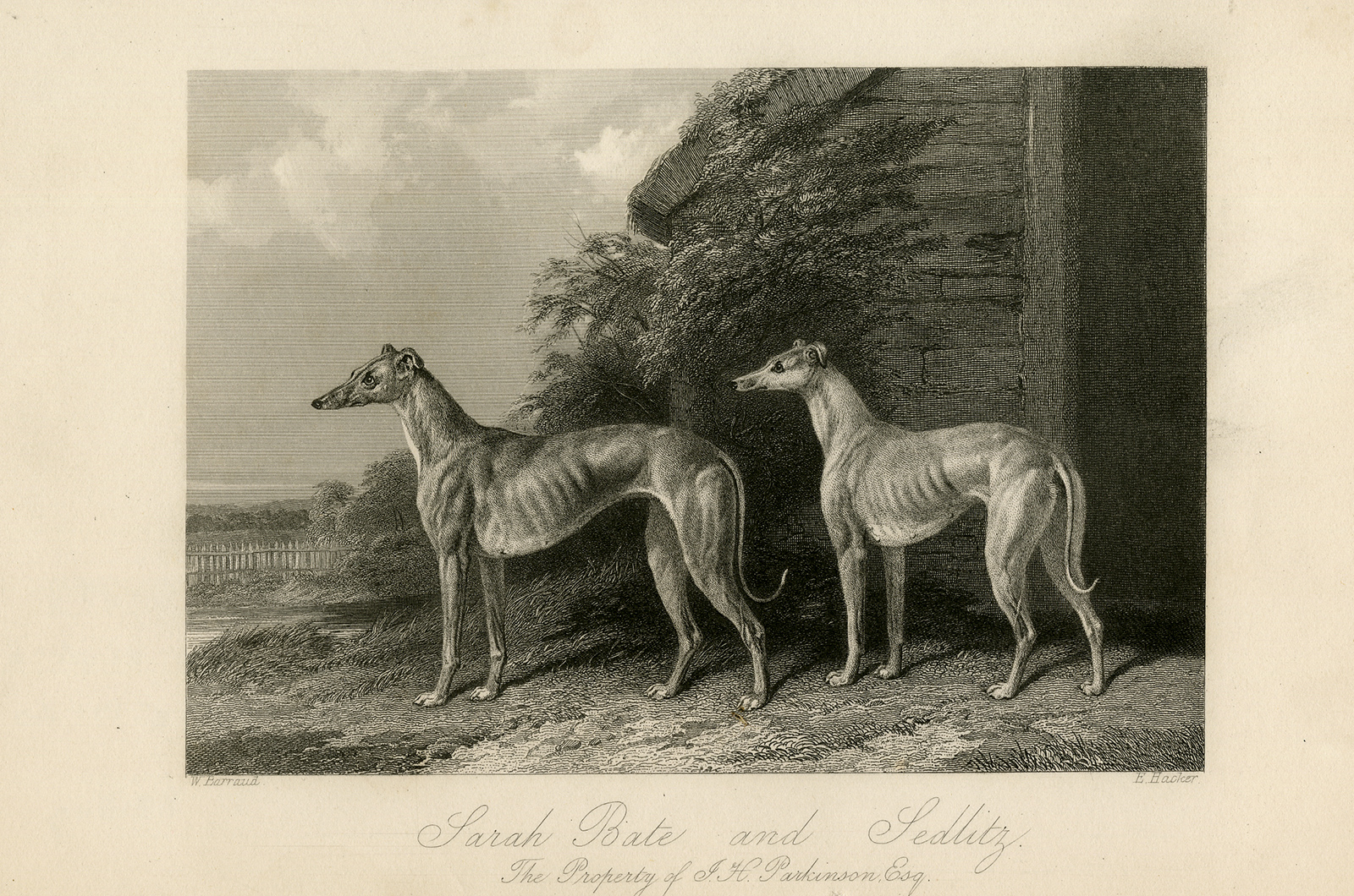 Antieke prent-GREYHOUND-SARAH BATE-SEDLITZ-DOG-Hacker-Barraud-1840