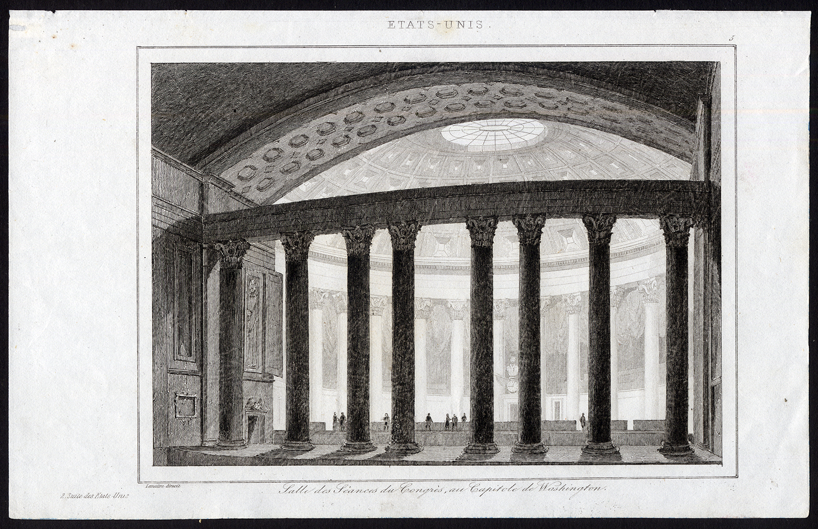 Antieke prent-HALL OF CONGRESS-WASHINGTON-CAPITOL-USA-Lemaitre-1849