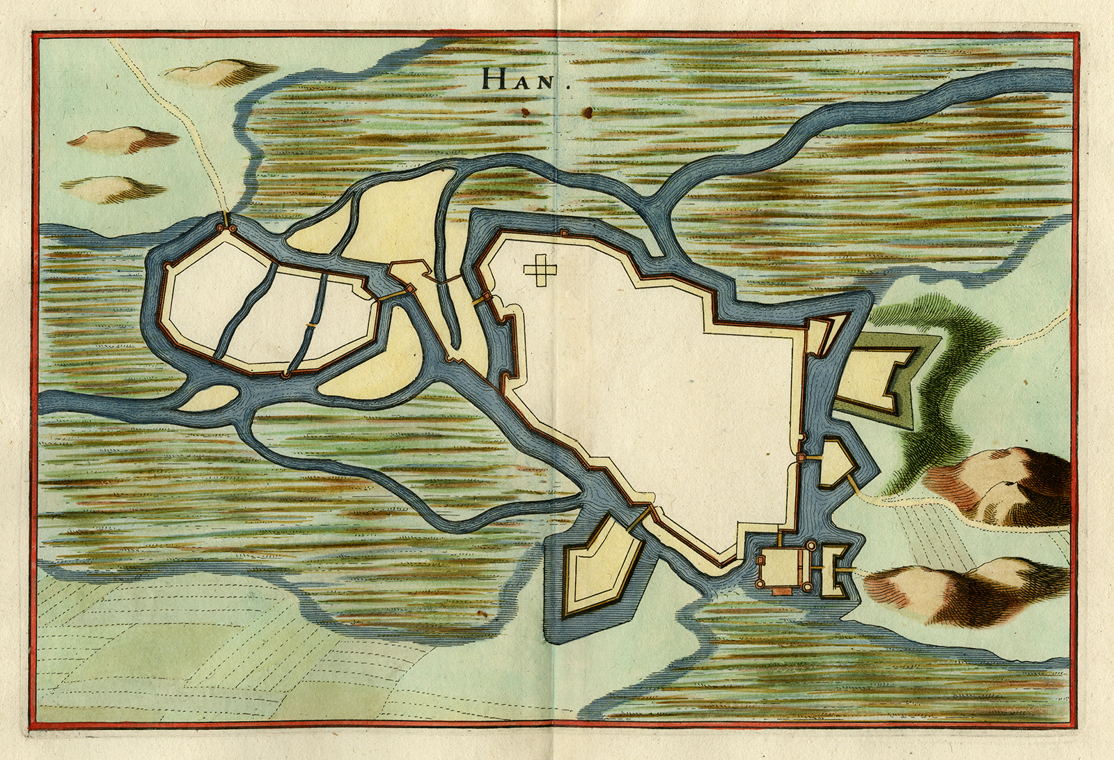 Antieke prent-HAN-FRANCE-FORTRESS-FORTIFICATIONS-Merian-1646