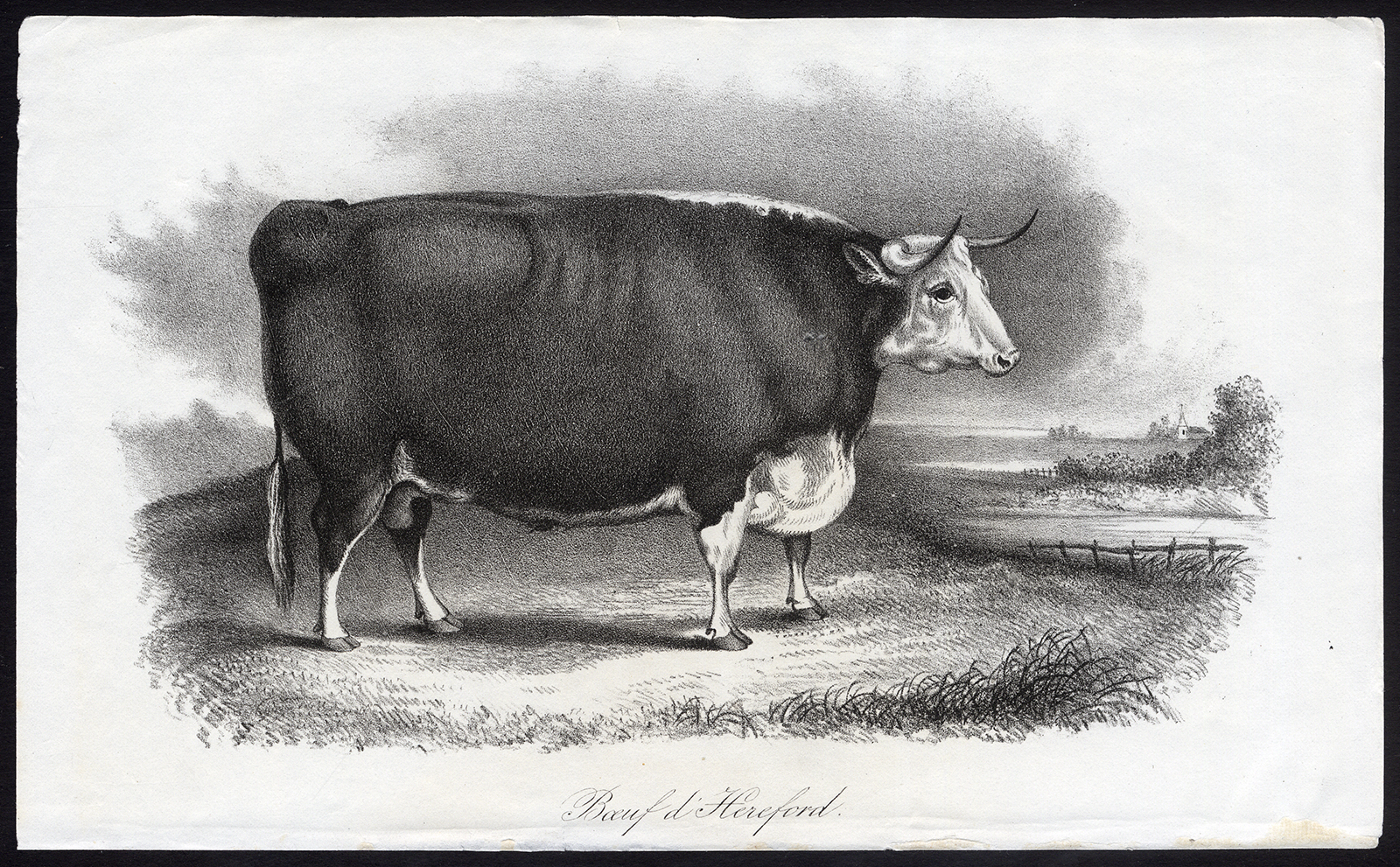 Onderwerp: Plaat: ‘Boeuf d’Hereford’. Dit bord toont een Hereford-stier.