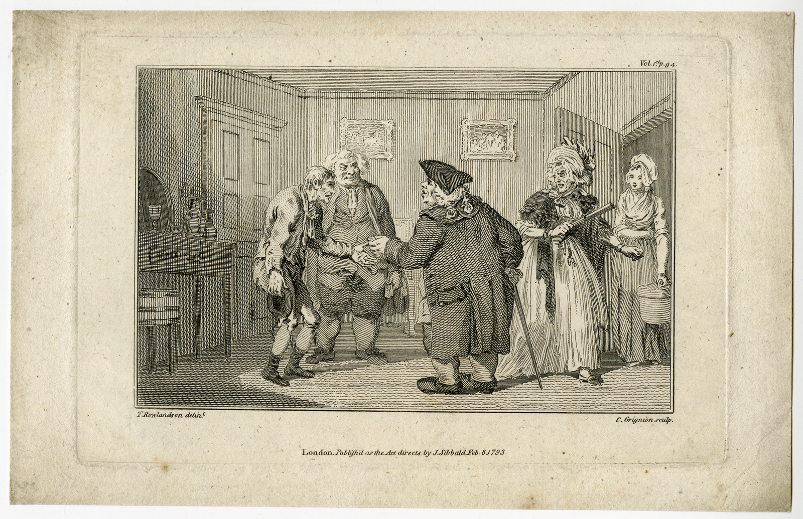 Kunstenaars en graveurs: Deze plaat gegraveerd door C. Grignion naar T Rowlandson.