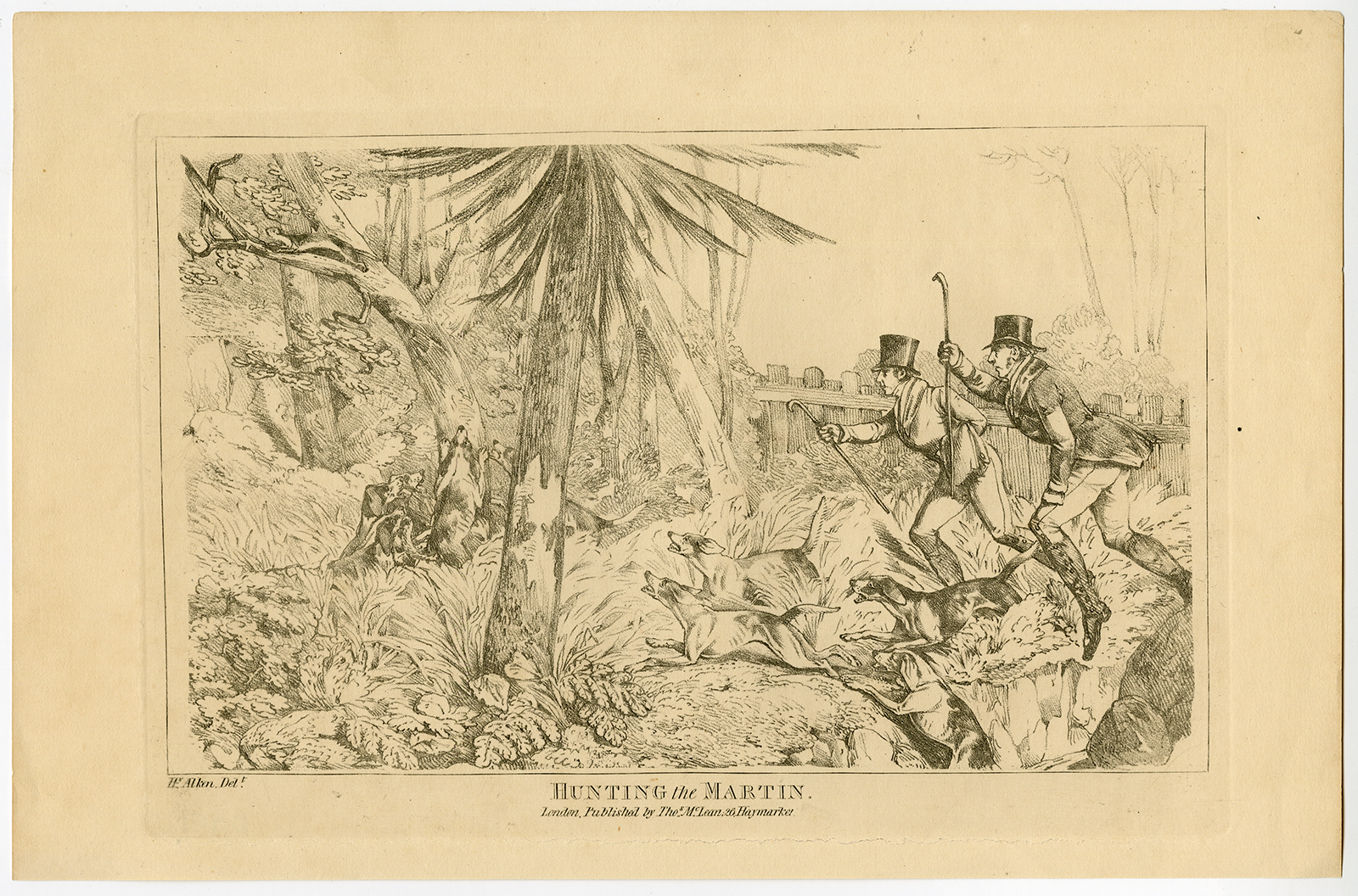 Antieke Prent-JACHT OP DE MARTIN-MARTEN-DOGS-Alken-1840