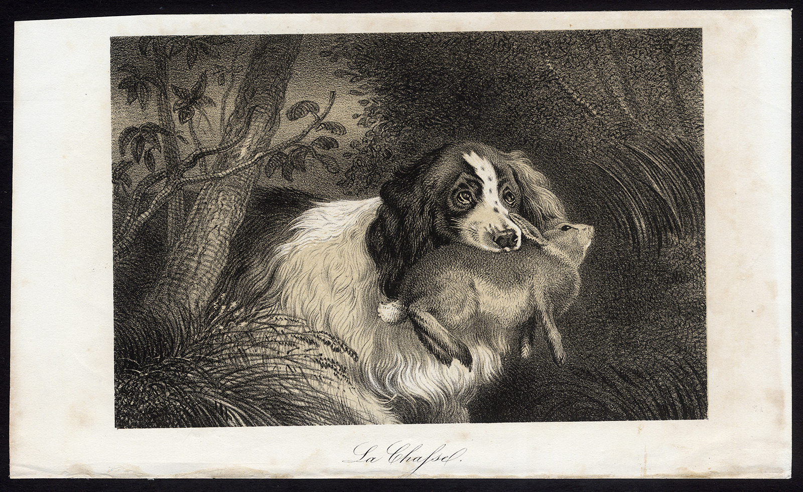 Antieke prent-JACHTHOND-HAAS-KONIJN-Journal des Haras-1853
